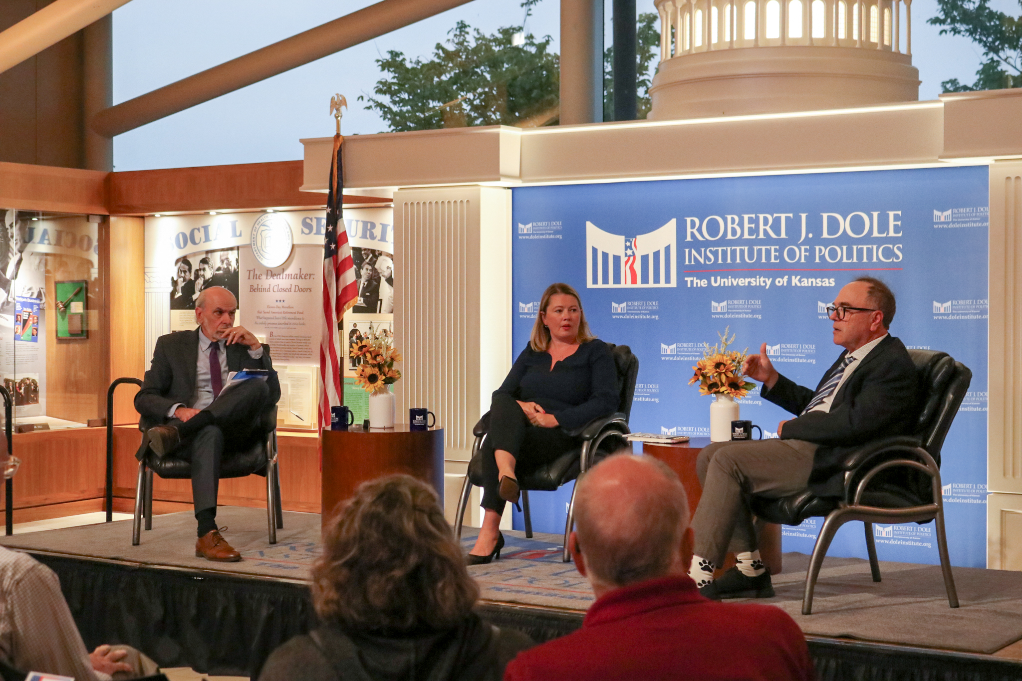 Pulitzer Prize-winning journalist and National Catholic Reporter executive editor James Grimaldi, and The Catholic Association senior fellow Ashley McGuire joined Dole Institute Visiting Fellow Jerry Seib for “Church and State,” a conversation on Catholicism and its influence on today’s politics and leadership