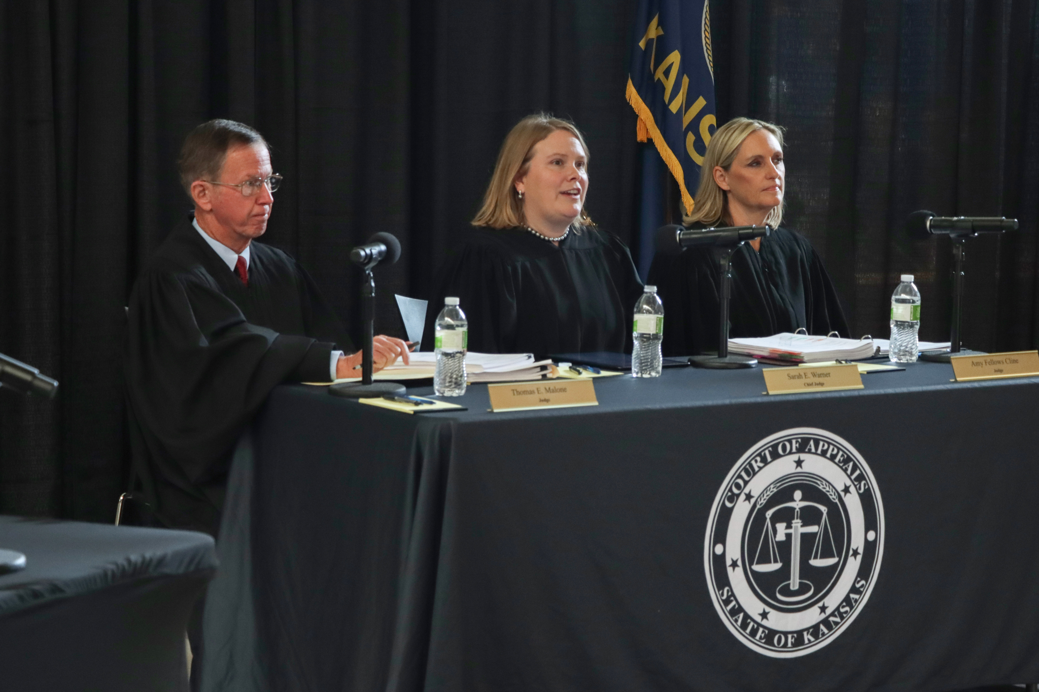 The Dole Institute hosted Kansas State Court of Appeals Judges Sarah Warner, Thomas Malone, and Amy Fellows Cline as they heard oral arguments in two cases involving constitutional issues in commemoration of Constitution Day