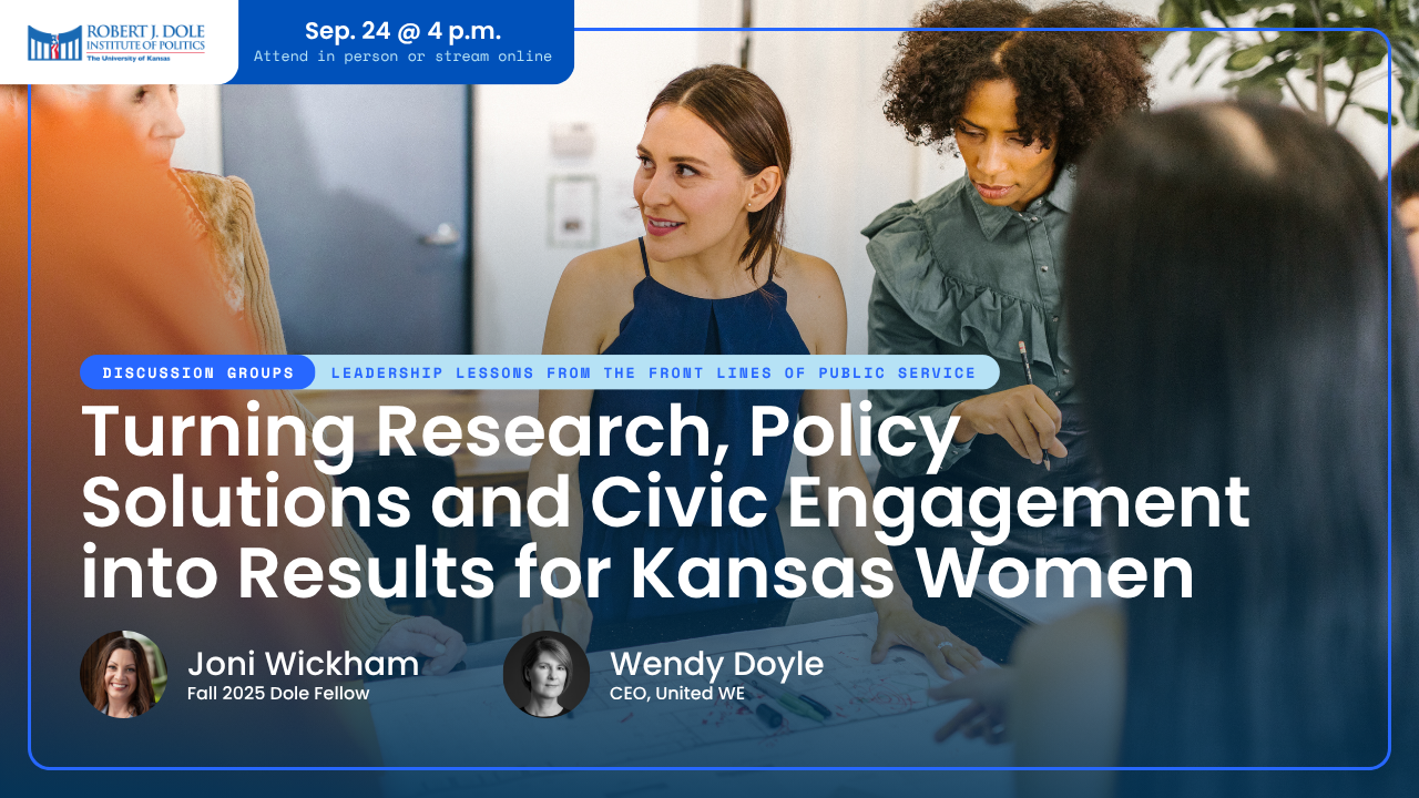 The Dole Institute is committed to universal accessibility in all programs and resources. We are in the process of making all of our web projects fully accessible. An accessible version of the material represented on this site will be made available upon request. Please contact us at doleinstitute@ku.edu to request the material be made available in an accessible format, or for general assistance.