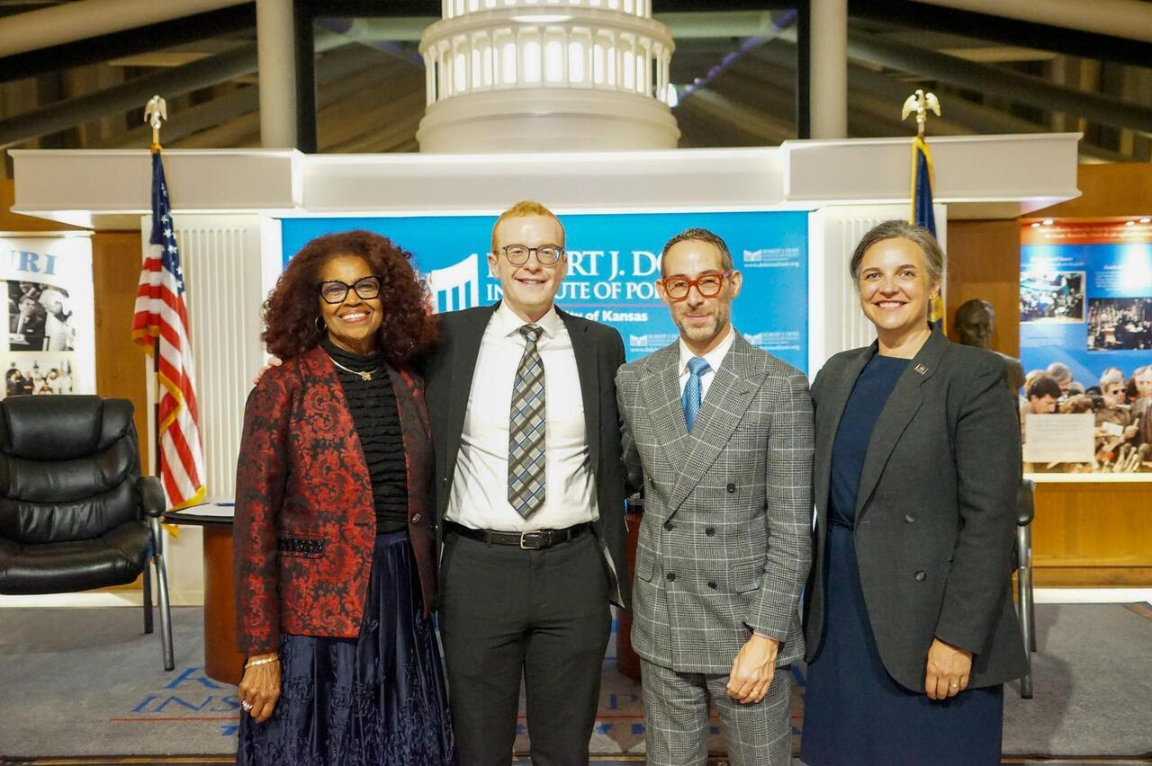 Constitution Day Program panelists Dr. Barbara Ballard, Jesse Burbank, and I. Glenn Cohen join Dole Institute Director Audrey Coleman for a photo after the program.