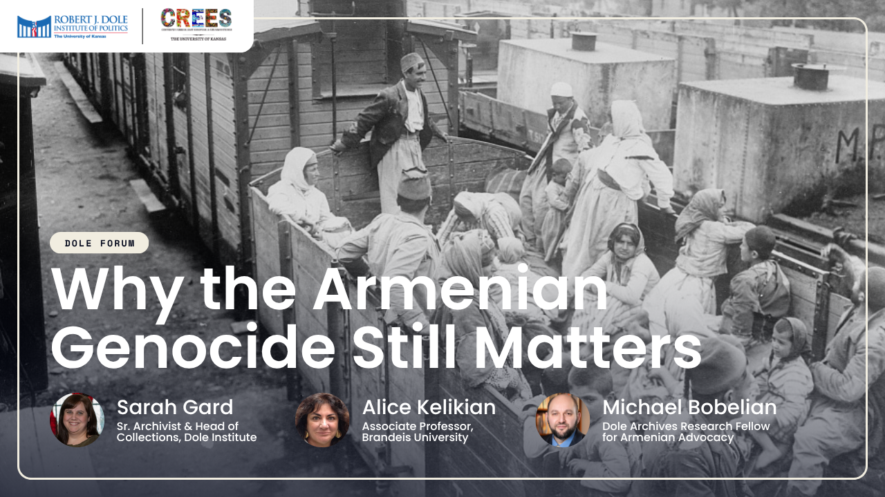 Join Dole Institute senior archivist and head of collections Sarah Gard, historian Alice Kelikian, and journalist Michael Bobelian for a conversation inspired by the Dole Institute’s original exhibit, “Dole & Dr. K,” that builds on the stories of loss and recovery turned advocacy for Armenia.