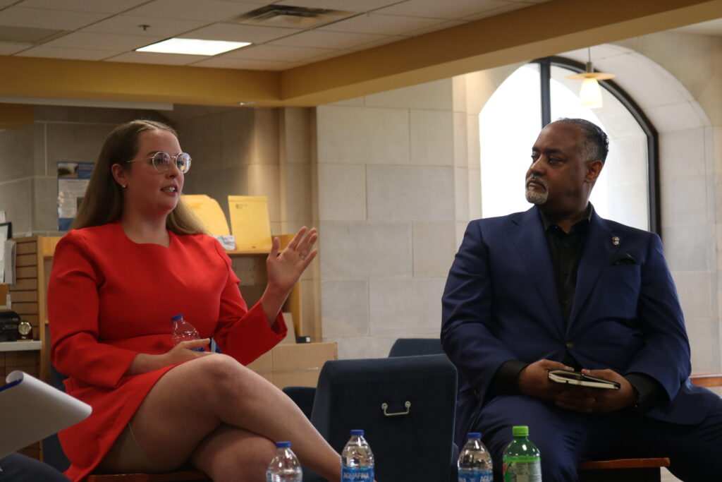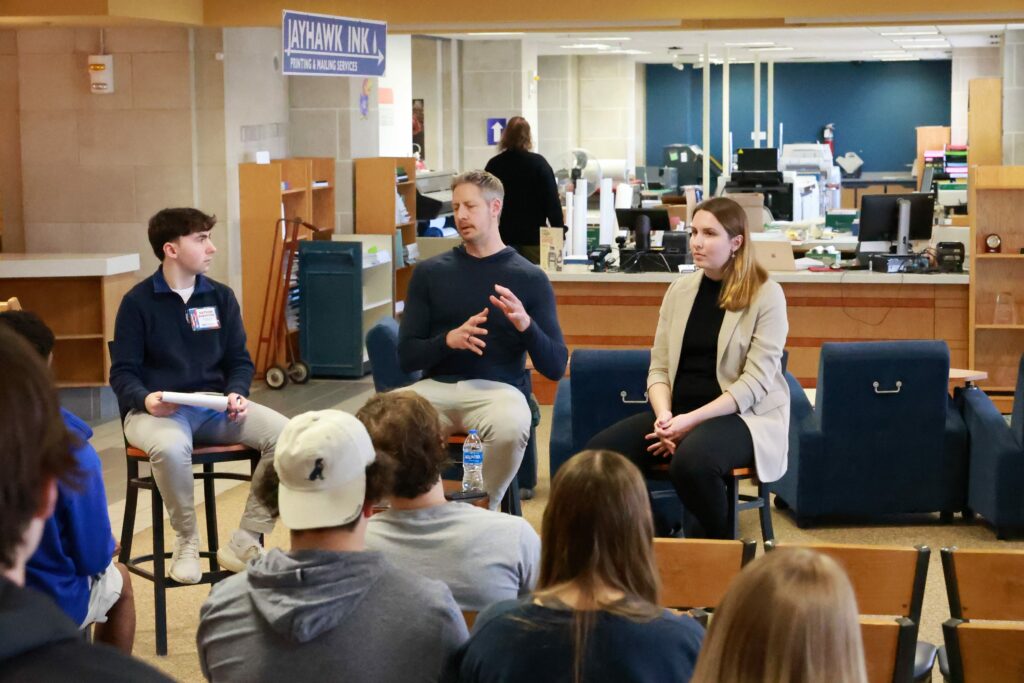 Mit Winter and Nataliya Bredikhina discuss the recent evolvement of NIL deals in college athletics on March 7. Photo by Kenna McNally.