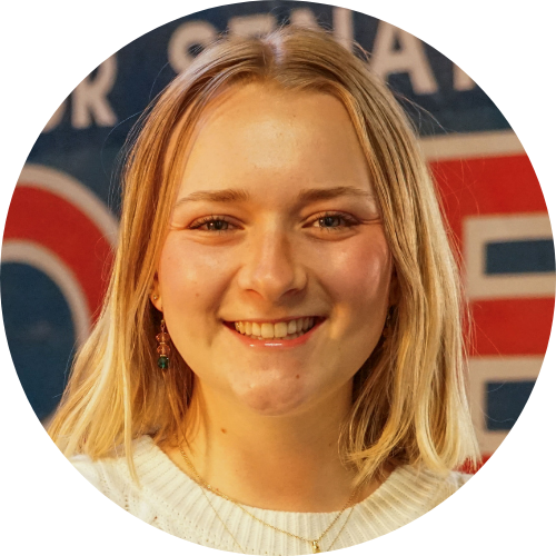 Kenna McNally serves as the Student Advisory Board Coordinator and the Marketing & Communications Intern at the Dole Institute. Through these two roles, she heads the Dole Institute’s student group, maintains the SAB’s media channels, and acts as the primary connection between students and the Dole Institute. She is a third-year student studying digital marketing communications, United States public policy, and business. Kenna also serves as the Chair of the Student Senate Community Affairs Council and is a part of HerCampus, Women Educated KU, and the University Honors Program.