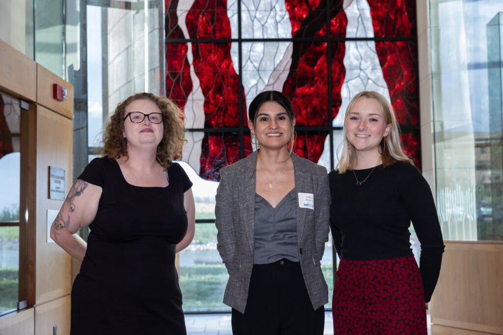 Amber Brown, Sophia Herrera, and Kenna McNally (from left) were the 2024 recipients of the Noah Hookstra Memorial Award, Robert J. Dole Service to Country Award, and the Elizabeth Dole Public Service Award, respectively.