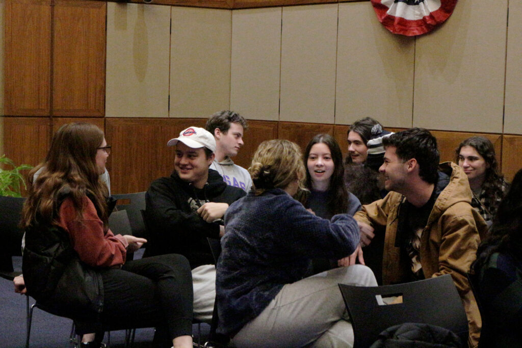 Students discuss the icebreaker question at the SAB meeting in the fall of 2023.